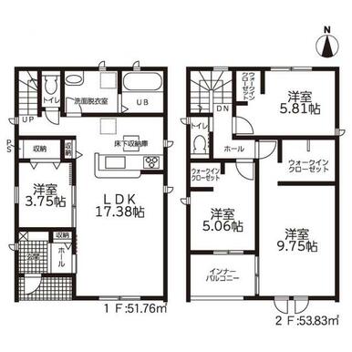 新築売戸建住宅 北名古屋市 熊之庄六の坪 2階建 4LDK
